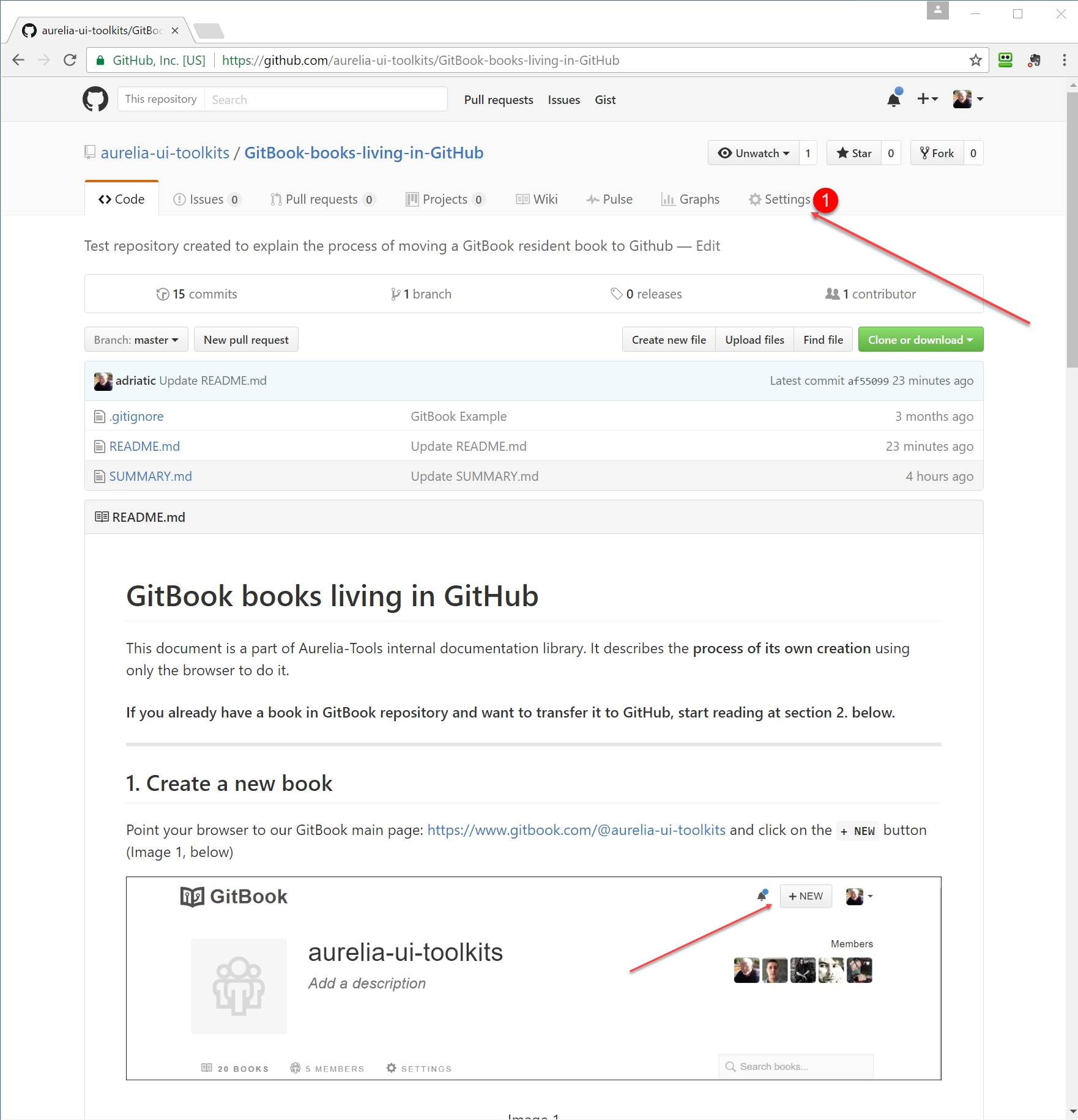 Point your browser to https://aurelia-ui-toolkits.gitbooks.io/gitbooks-living-in-github/details and click on the SETTINGS link (Image 3 below)